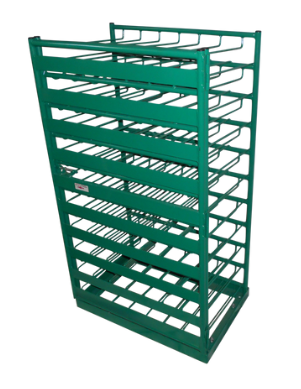 Layered Van Rack with door M6. Holds 70 M6 cylinders with latching door, powder coat green.